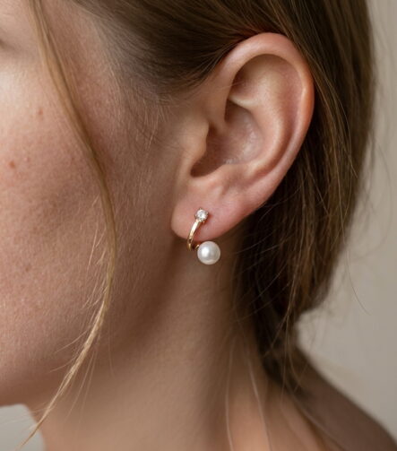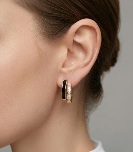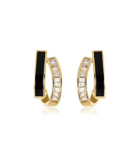 Noir Arc Gold Hoop Earrings with Crystal Detail