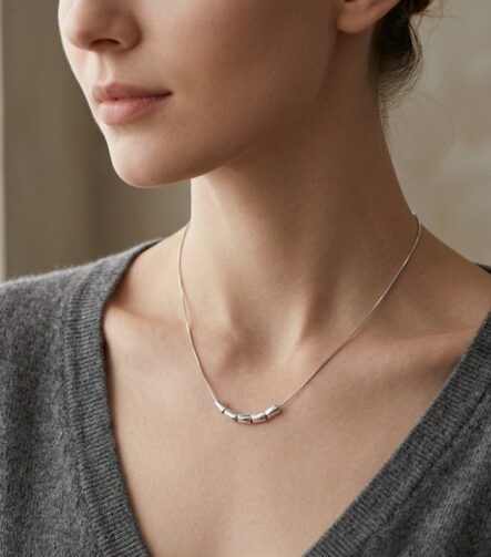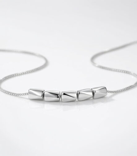 Geometric Arc Silver Bead Necklace