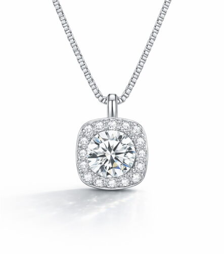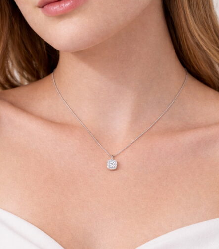 Sterling Silver Cushion Halo Pendant Necklace