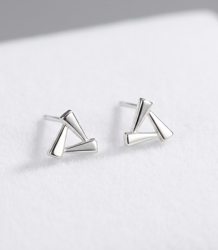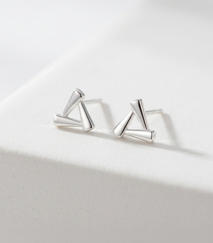 These silver triangle stud earrings feature a compact geometric design that sits neatly on the ear. The polished surface reflects light softly, giving the piece a clean and refined appearance.