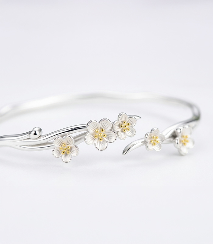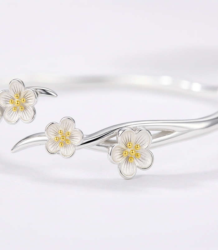 Inspired by the natural beauty of small blossoms and flowing branches, this bracelet captures a quiet floral elegance in a clean, wearable form. The design avoids anything overly ornate, focusing instead on balance, softness, and graceful detail.