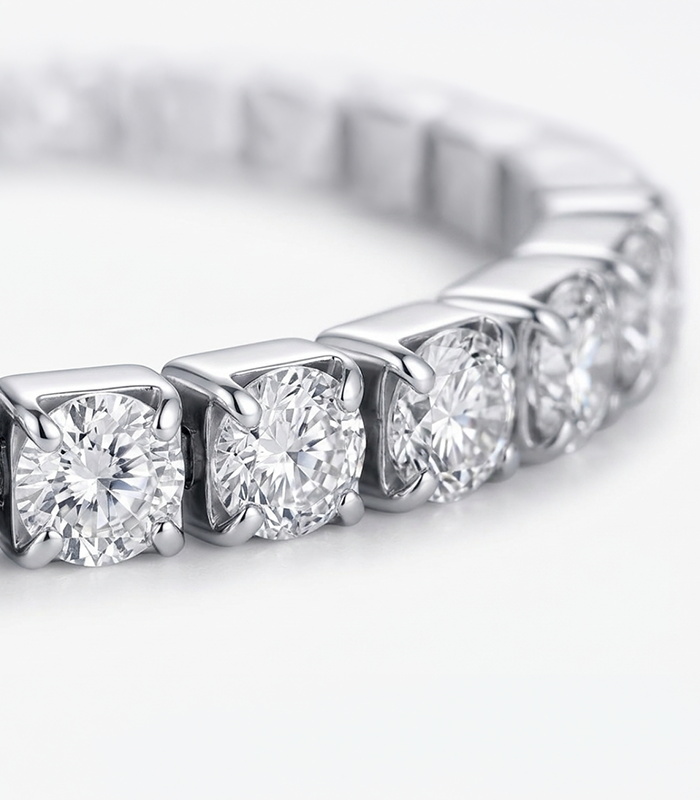 • Continuous row of stones delivers clean, balanced sparkle
