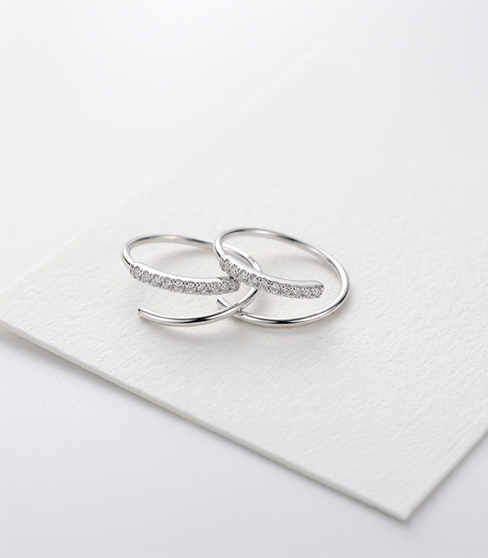 Rather than feeling overly decorative, the combination of polished silver and fine sparkle keeps the design clean and balanced. The result is a piece that feels modern, feminine, and quietly distinctive.